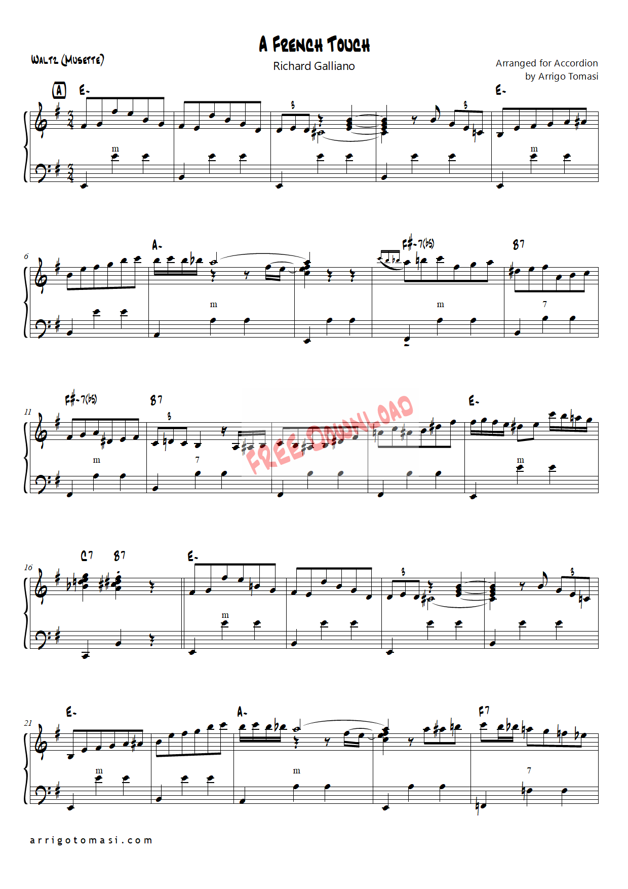 Musette Waltz by Richard Galliano, arranged at reduced speed (200 bpm). Also available the playalong video at 230 bpm.
